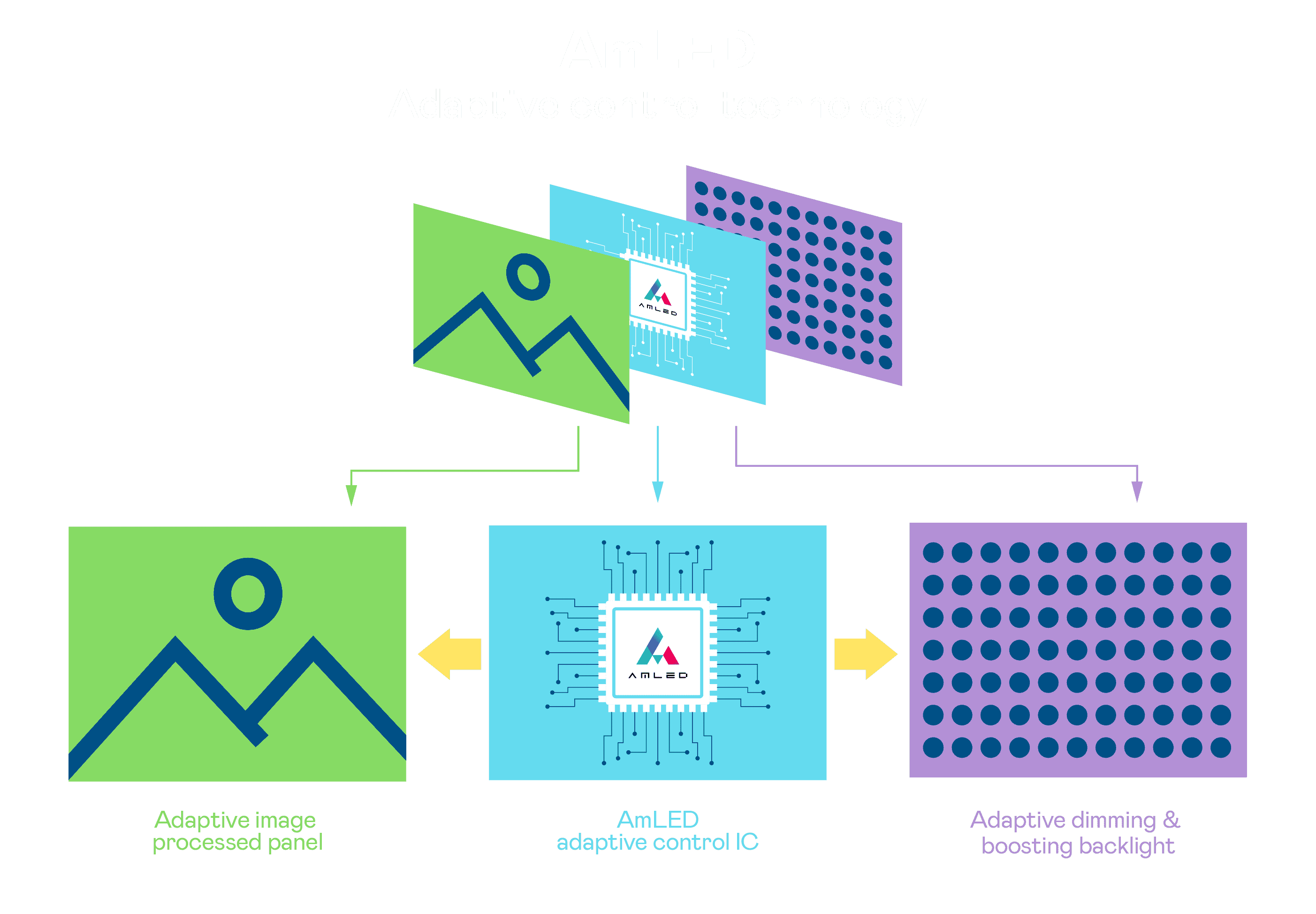 AmLED 具备更省电与低蓝光特性。。。与一般的 LED 背光显示技术相比,,,由于 AmLED 常时处于局部调光状态,,,,其功耗仅有前者的 50% 左右,,同时 AmLED 还具备低蓝光特性,,,满足长时间使用的护眼需求。。