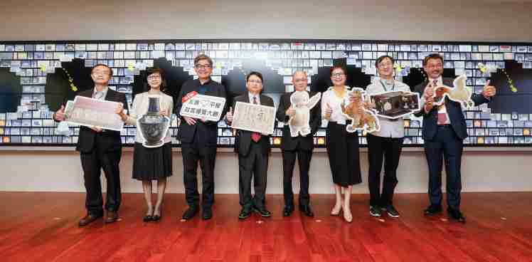 彩霸王携手创利空间为故宫建置的智慧文物互动导览墙及轮播墙,,,,今日正式启用。。。。(左四:彩霸王新事业暨投资管理总部副总经理杨本豫、、、右四:故宫博物院院长吴密察、、右三:太极影音董事长黄宝云)
